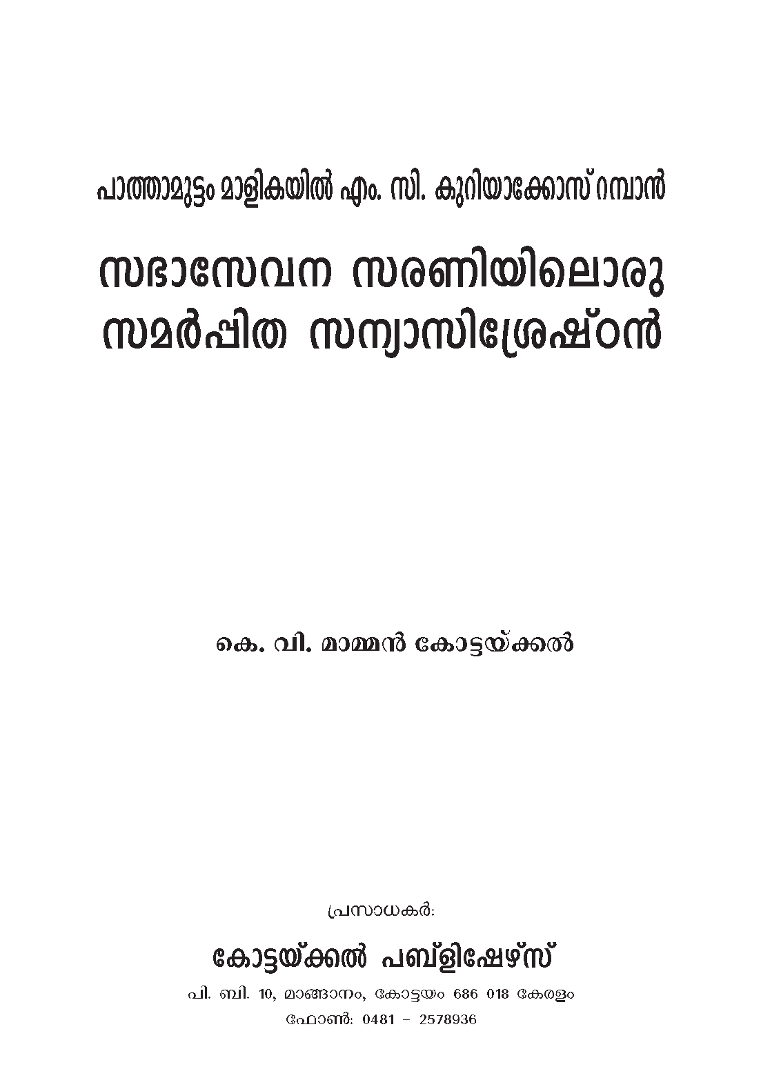 Publishers : Kottackal Publishers, P. B. 10,