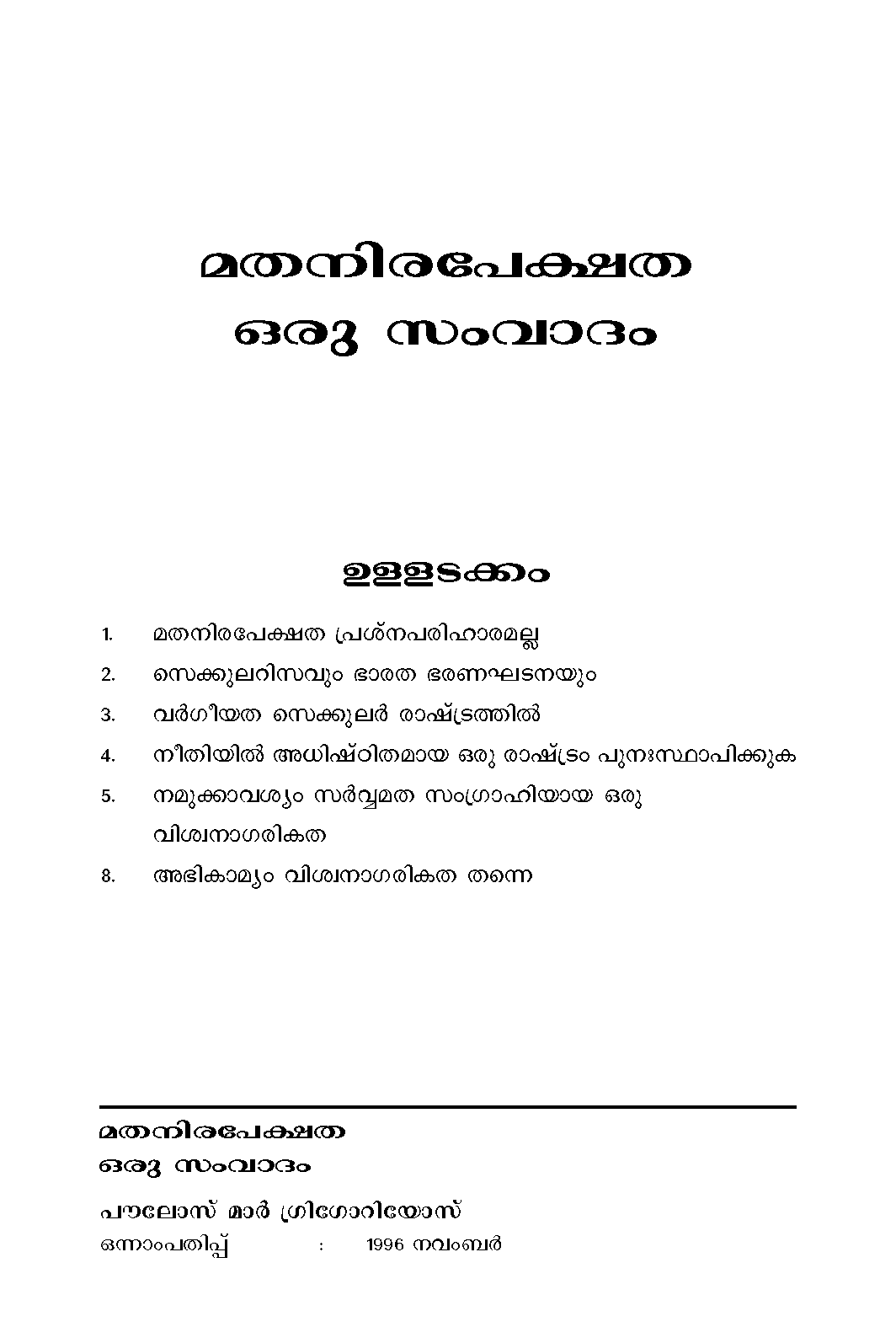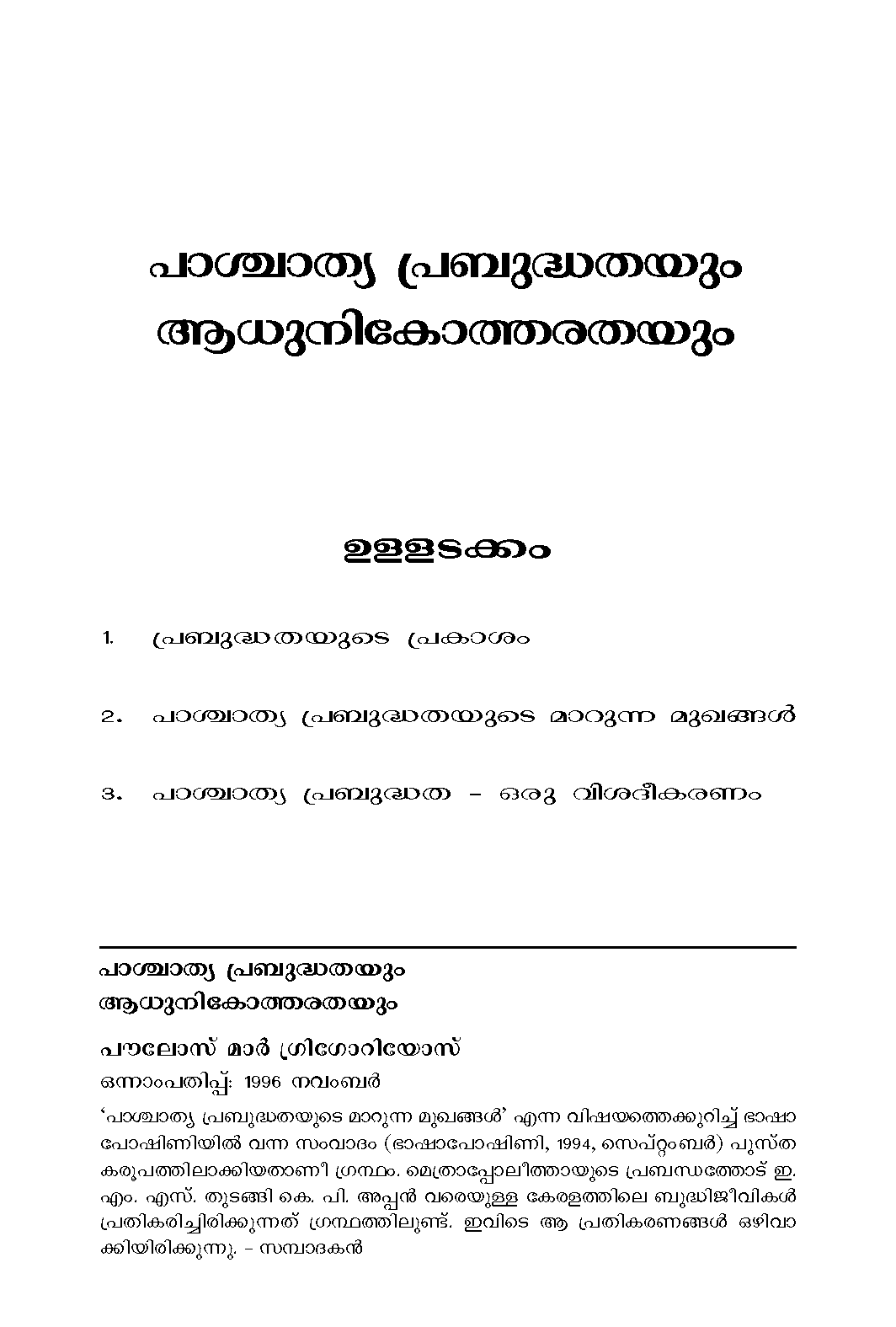 Distributors: Sophia Books, Thirunakkara, Kottayam Mob: 99471 20697