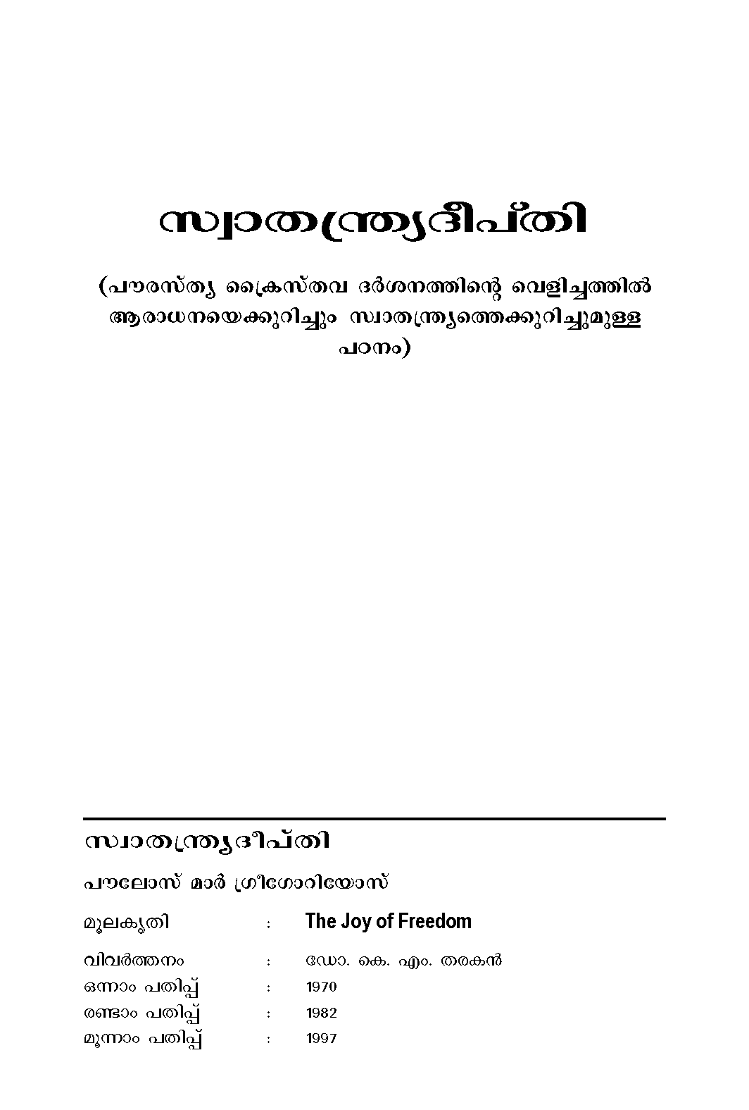 Typesetting & Printing : Sophia Print House, Kottayam
