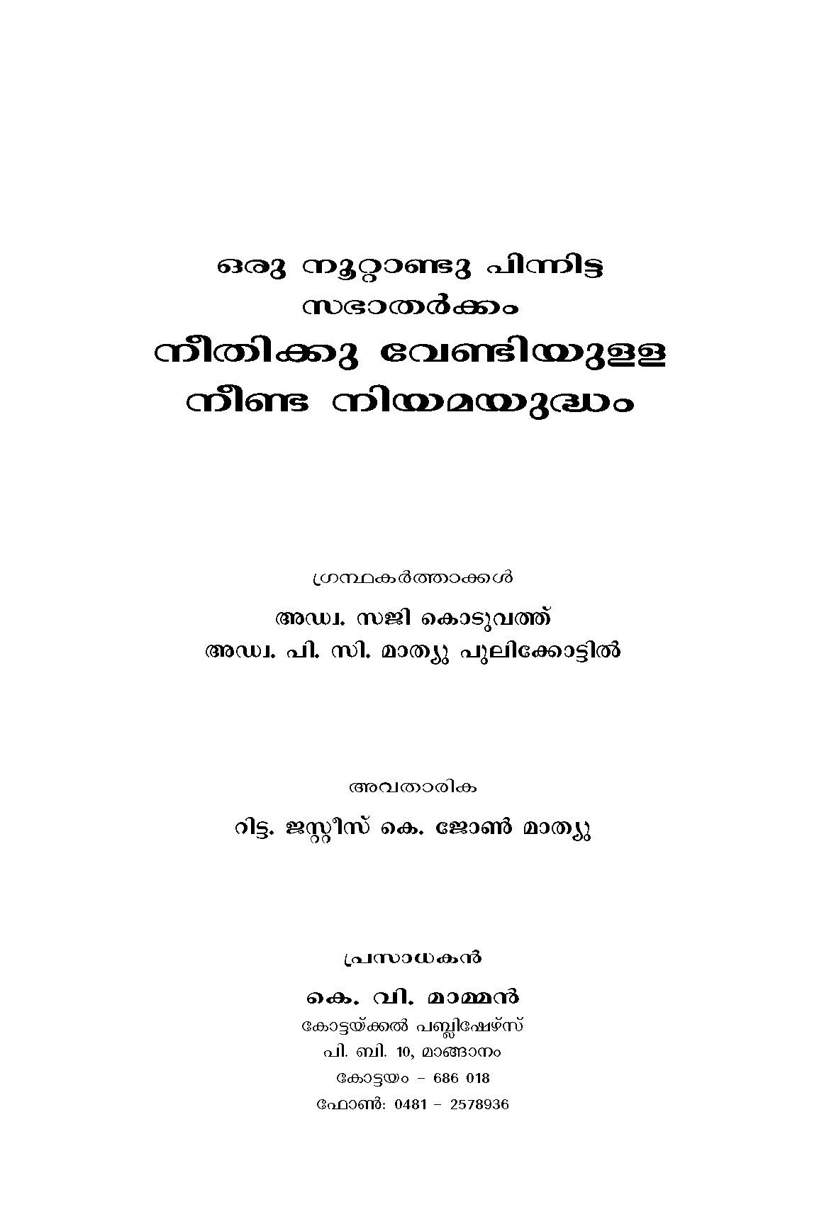 Typesetting & Printing : Sophia Print House, Kottayam Ph: 2303237