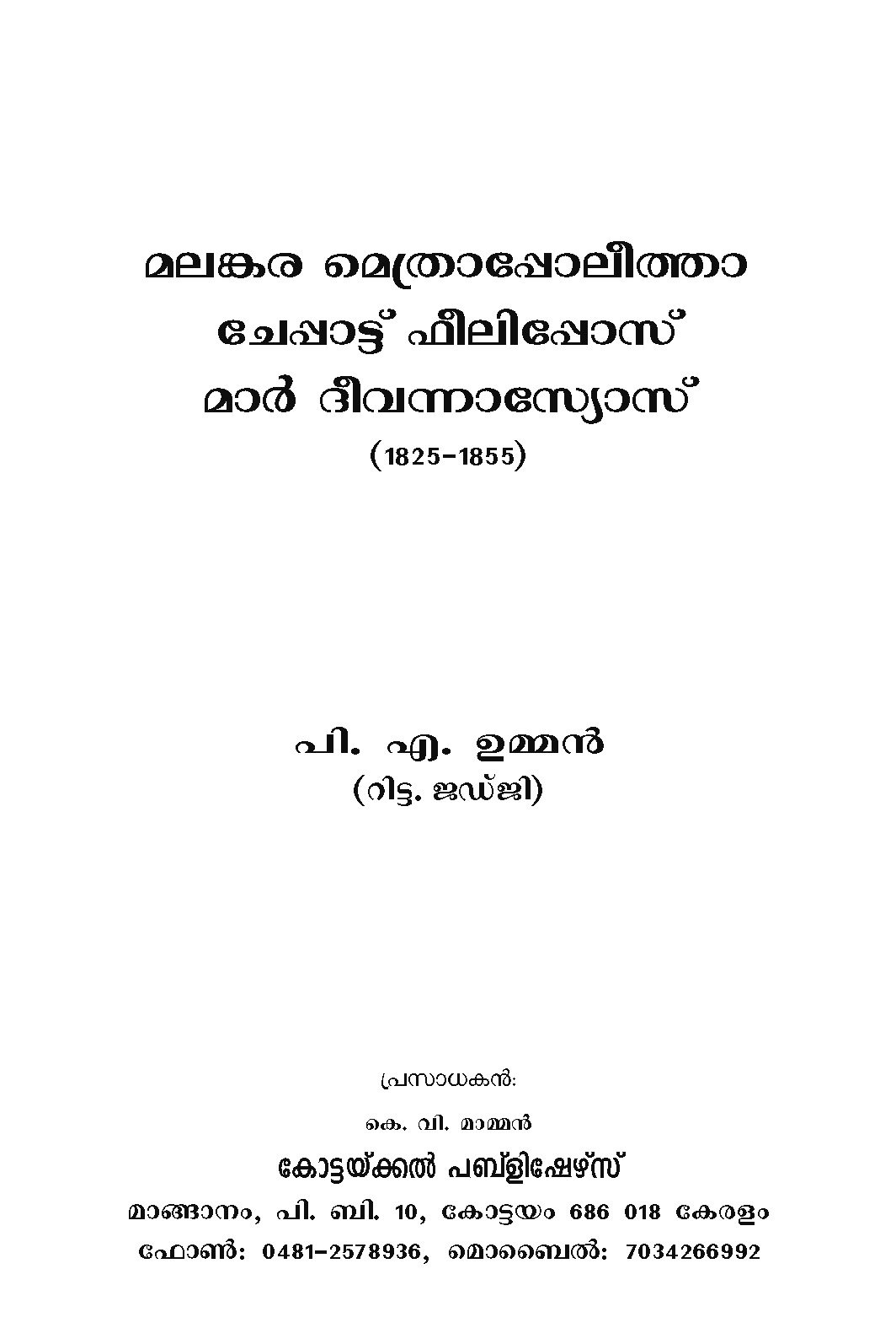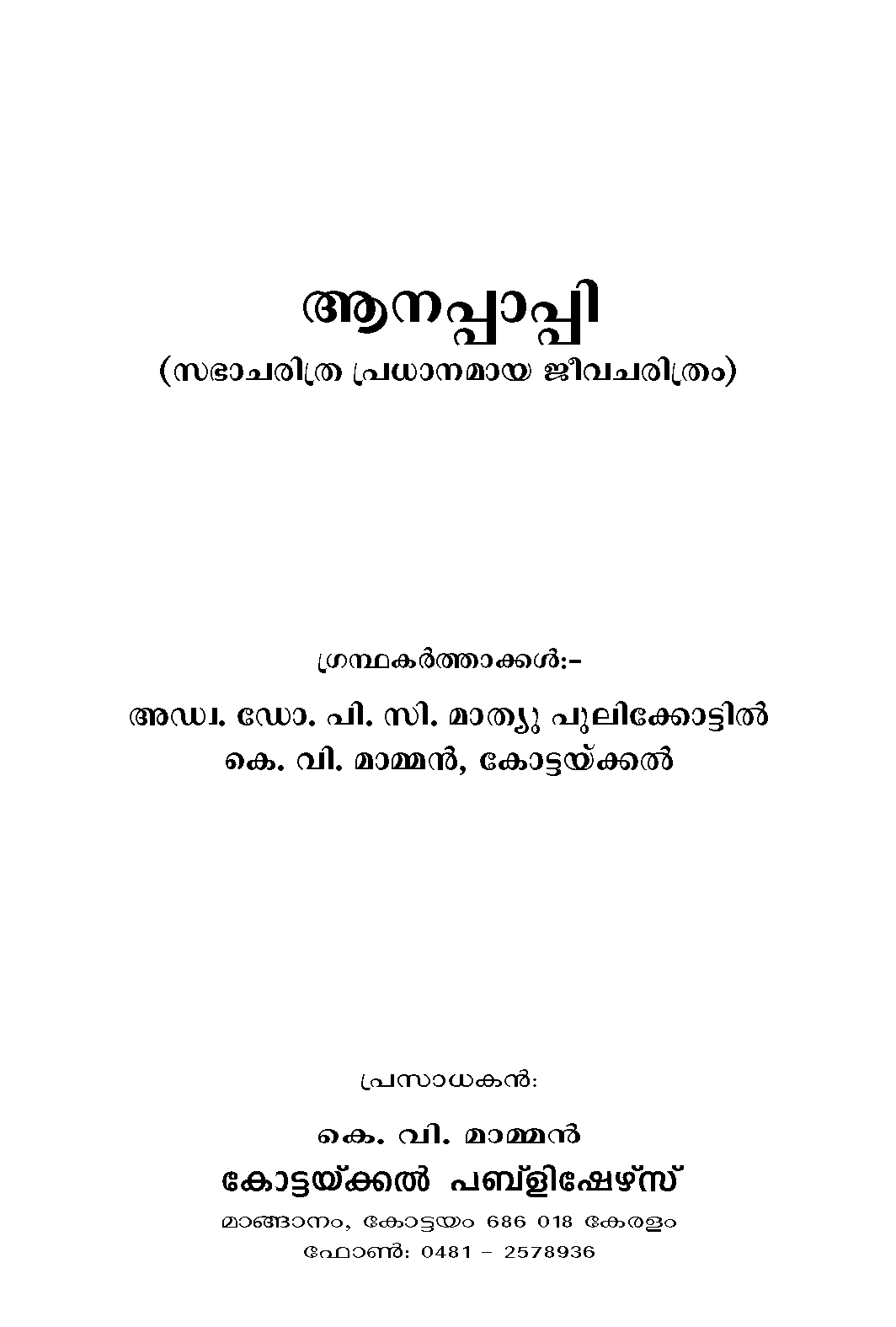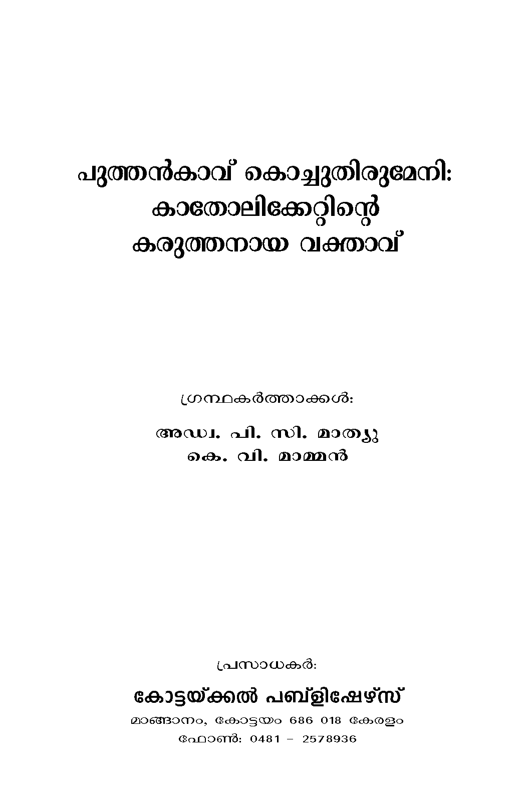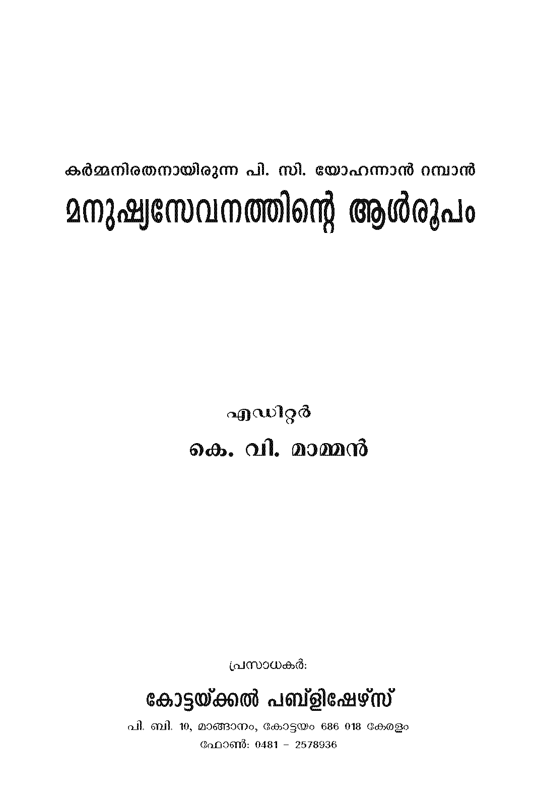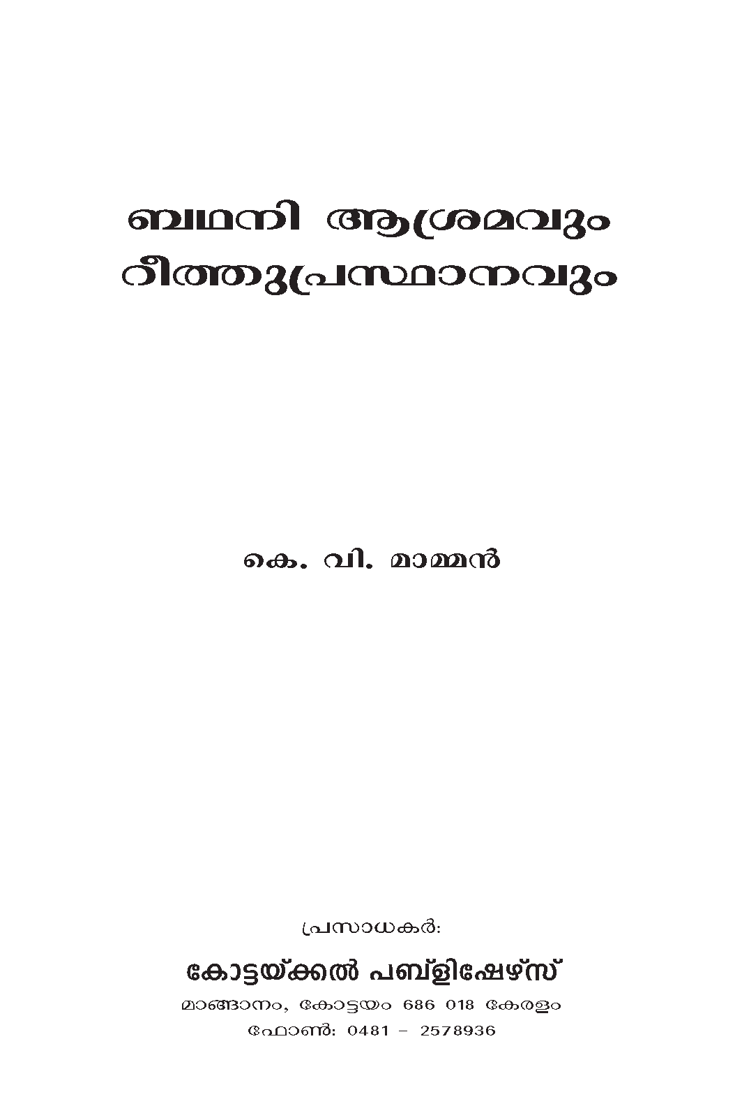 Typesetting : Sophia Print House, Kottayam Ph: 3255054