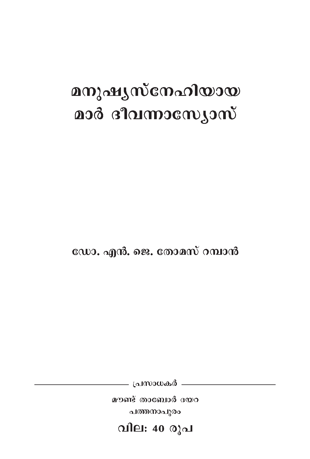 Published by Mount Tabor Publications, Pathanapuram